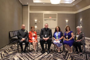 • 2019-2021 SPDCCW Board Members From Left: Doreen Ward Service Commission, Sonia Tummings Spirituality Commission, Linda LaGrande Leadership Commission, Josephine Maestas 2nd Vice President, Elizabeth Aubin President, Melissa Garrett 1st Vice President, Linda Seufert Treasurer